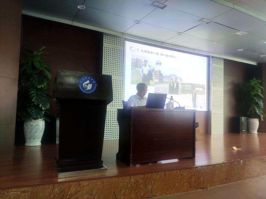 赵文才以“如何帮助同学们克服对数学的‘恐惧心理’,使他们热爱数学、学好数学”设问,讲授了自己多年从教以来运用解决思想问题、改变教学策略、传授学习方法等方式,扎根教学一线,潜心教书育人的生动案例,他以高等数学统考、周末数学讲坛、翻转课堂三者为例,讲述了大学数学教学团队积极推动教学改革,在教学过程中持续深化教改,推进课程建设的过程,团队、学生获得的各项荣誉引起了教职工们的赞叹。随后,赵文才分享了自己将哲学思想、理性思维、文化内涵、价值理念融入理学特质“课程思政”的思考与实践,他表示,大学教师作为学生人生的楷模,要“安居山海,乐教尚研”,修其性、养其道,认真教书、潜心科研,做一流的学问,培养一流的人才。