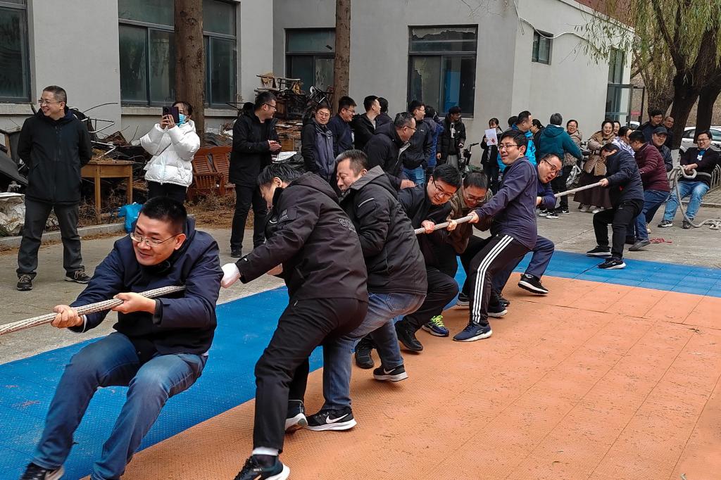 在投壶比赛中,老师们屏息凝视,精准投掷,展现出他们敏锐的眼力和高超的技巧。在跳绳比赛中,老师们轻巧灵活,步伐统一,各自拿出看家本领。在门球比赛中,老师沉着冷静,精准调整方向,将球滚入目标位置。在踢毽子比赛中,五颜六色的毽子上下翻飞,老师们起脚抬落间展现了出色的技巧与灵活性。而拔河比赛则是将运动会的氛围推向了最高潮,各系(办)抱团发力、全力以赴,在呐喊声中激烈竞争,毫不放松。