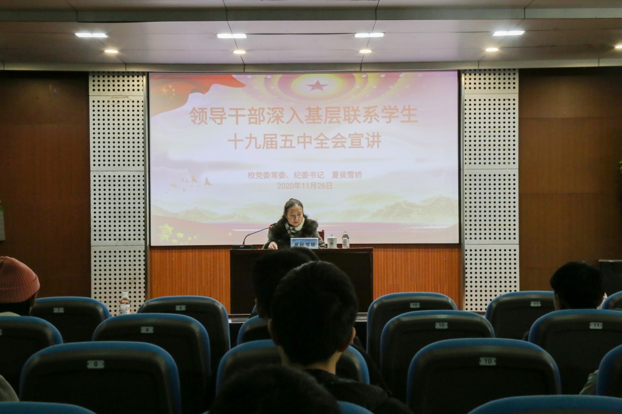 点击:为深入贯彻党的十九届五中全会精神,落实学校领导干部深入基层联系学生工作要求,11月26日下午,校党委常委、纪委书记夏侯雪娇在学院报告厅向机械设计制造及其自动化专业2019-2班学生宣讲党的十九届五中全会精神。成人小说 党委书记韩宝坤,党委副书记、副院长陈猛出席,机械设计制造及其自动化专业2019-2班全体学生参加。 夏侯雪娇紧扣党的十九届五中全会主题,为同学们详细讲解了《中国共产党第十九届中央委员会第五次全体会议公报》和习近平关于《中共中央关于制定国民经济和社会发展第十四个五年规划和二〇三五年远景目标的建议》等重要文件,对党的十九届五中全会精神进行了深入解读。围绕党和国家事业取得的历史性成就和改革发展大势,她介绍了我国近几年来在国家发展、社会治理等方面取得的巨大成就,2035年远景目标和“十四五”时期我国发展的指导方向、主要目标、重点任务,引发同学们的强烈共鸣。 夏侯雪娇勉励同学们,当今世界正经历百年未有之大变局,作为千禧之年出生的新时代青年,要做变局中的引领者,而不是适应者,希望同学们时刻牢记总书记的嘱托,胸怀报效祖国的抱负,重视培养对知识的建构,为跻身创新型国家前列、实现科技强国贡献自己的青春力量。 本次领导干部深入基层联系学生工作,体现了学校对青年学生思想动态的关注,引领同学们深入学习党的最新政策方针,激发了广大学生的爱国热情,引导同学们学习领会党的十九届五中全会精神,提高自身修养,与时代同呼吸,与祖国共命运。(通讯员:祝月盈 林范运 摄影:孙建华)