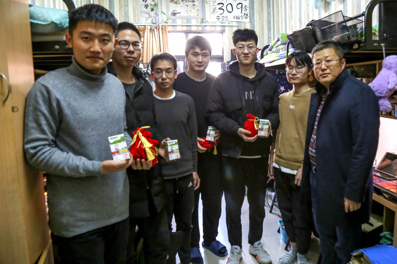 随后,陈猛与林美玫、曲岩代表学院为考研学子送上精心准备的考研福袋, 一个个“状元”福袋中装了脐橙(寓意胸有“橙”竹,马到“橙”功)、牛奶(寓意牛气冲天,好运连连)等寓意丰富又充满营养的慰问品以及老师同学们饱含鼓励的贴纸。