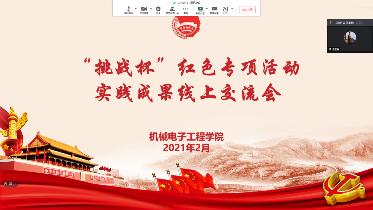 点击:为进一步做好“挑战杯”红色专项活动的备赛工作,提高实践作品质量,扩大实践育人效果。2月22日,成人小说 举办了“挑战杯”红色专项活动实践成果线上交流会,成人小说 团委老师王玉鹏、苗成旭出席会议,各社会实践项目负责人及志愿实践中心全体成员参加本次会议。