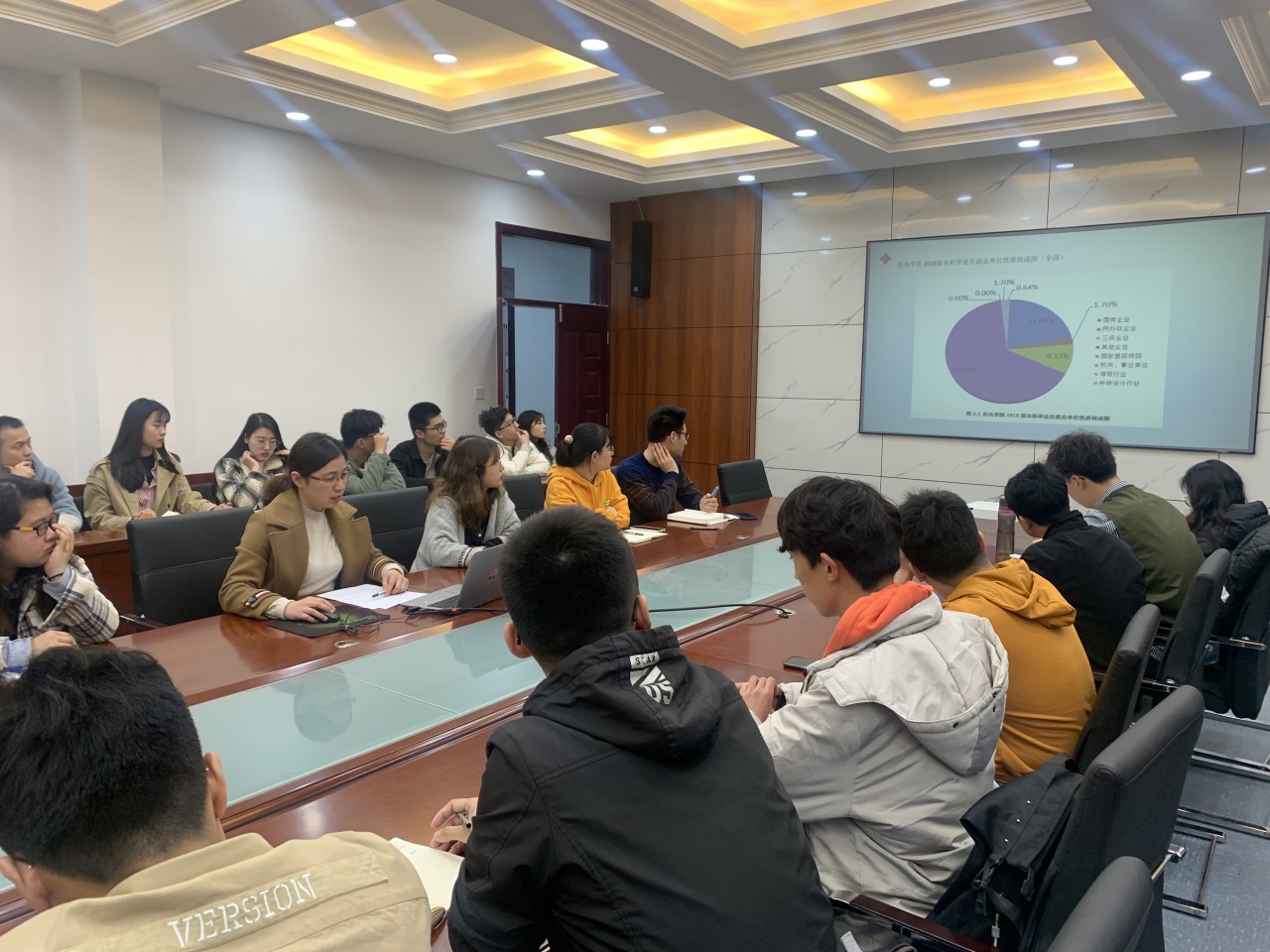 会上,樊玉华介绍了学院近三年毕业生的就业情况,就各专业就业前景、就业方向和升学情况等做了详细分析。与会学生干部汇报了班级目前就业现状及存在的问题,并对下一步的工作进行了具体规划。樊玉华在听取各班就业情况后,就各类就业问题提出了具体措施和建议,并提出四点要求:一是认清就业形势,转变就业观念。要主动克服“慢就业”“不就业”“等、靠、盼”等心态,充分利用各项资源,主动应对挑战;二是拓宽就业渠道,把握就业时机。积极参加国家“三支一扶”“西部计划”等基层就业项目,报名参军入伍,投身国防事业,在实践中磨炼成长;三是提高就业技能,树立就业信心。考研、调剂、就业等各类学生群体,要积极提升复试、调剂、求职及面试各种技巧,提高核心竞争力,树立考研求职信心;四是精准就业帮扶,做好就业服务。各学生干部要倾情帮助班内学习困难、经济困难、就业困难等同学,分门别类做好问题摸排,落实班级“一对一”精准帮扶。最后,她表示,幸福都是奋斗出来的,大家应积极调整心态,主动出击,努力创造就业机遇,在严峻的就业浪潮中选择合适自己的职业,早日实现自己的人生梦想。