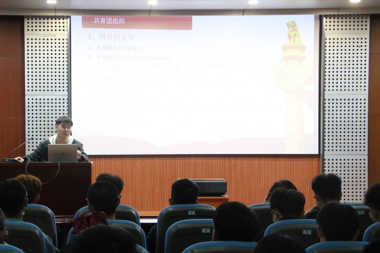“青年者,人生之王,人生之春,人生之华也。”赵庆星从共青团员位置与设定、团员的权利与义务、团的基础知识、团内活动的开展、共青团组织和推优入党六方面展开,介绍了共青团员身上的责任与担当。幽默风趣的语言,辅以PPT灵活组图,将团务基础知识活灵活现地展开在团支书的面前。通过聆听细致的讲解,团支书们对团务知识有了更加清晰的认识,也更有信心办好日后班级的团日活动。