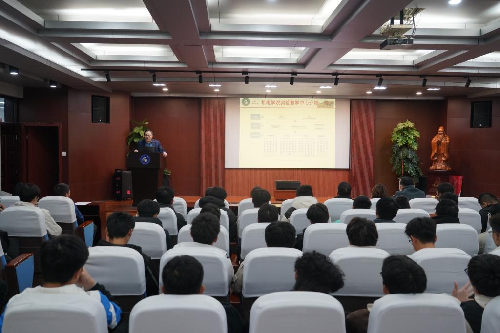见面会上,张鑫首先就学院实验教学支撑人才培养体系及学院实验教学中心的先进设备、资源进行详细介绍,并对参会学生提出希望与要求。他强调,作为工科学生要注重理论联系实际,不断增强动手加工、制作、调试实验设备的实践能力,持续强化创新意识,形成分工合作、相互尊重、有效沟通、互相启发的良好团队氛围。