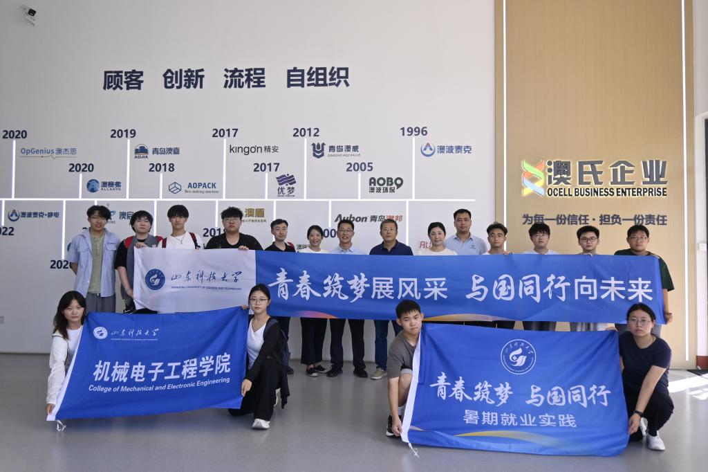 党委书记陈猛、学工办主任(团委书记)樊玉华、辅导员宋阔、马文豪带领2026届本科毕业生代表,赴青岛澳波泰克自动化有限公司开展访企拓岗暨暑期就业实践活动。