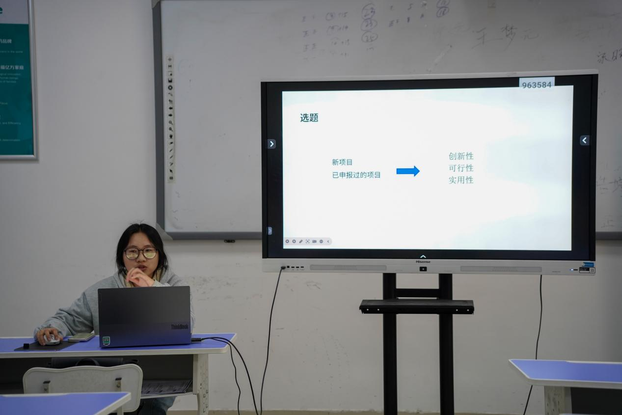 随后,2025年国家级大创项目负责人王艳、刘孟泽同学结合自身经历,进行了干货满满的实战分享。从立项材料的精准准备、申请书的规范撰写,到答辩现场的从容呈现;从项目推进的阶段性规划,到科创竞赛的实战技巧,两位主讲人细致拆解关键环节,用真实经历为学弟学妹们搭建起从“敢参与”到“能出彩”的桥梁。他们鼓励大家积极投身科研项目,在实践中锤炼真本领,在探索中收获成长。