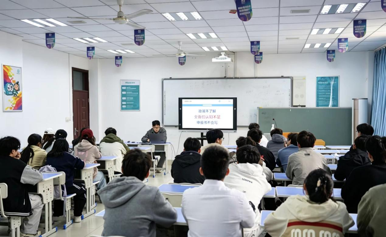 点击:为深化创新创业教育改革,全面提升学生科创能力与实践素养,4月14日下午,成人小说 在J8-313教室成功举办2026年大学生创新创业训练计划专题培训会。本次活动由学院辅导员及2025年国创项目优秀负责人主讲,2026年大创计划指导教师、项目团队成员共同参与。