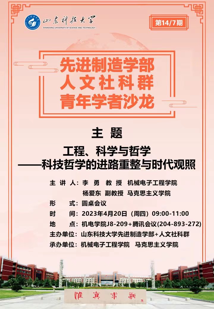 先进制造学部与人文社科群青年学者沙龙:工程、科学与哲学——科技哲学的进路重整与时代观照